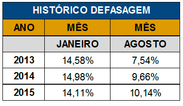 O histórico da defasagem nas últimas pesquisas, vide tabela abaixo, costuma trazer números maiores no início do ano e uma diminuição ao término desse. De acordo com José Hélio Fernandes, isso se dá até pela conscientização do empresário após a primeira divulgação. “Sempre reforçamos a importância da participação do empresário em eventos como o CONET para que possa se informar sobre as taxas que merecem atenção na hora de gerenciar os negócios. Sabemos que o trabalho da entidade faz diferença, até mesmo pelos números da defasagem, que se modificam no decorrer do ano com mais conscientização. Por isso, também, a decisão de trabalharmos um evento logo no primeiro mês de 2016”, comenta Fernandes.