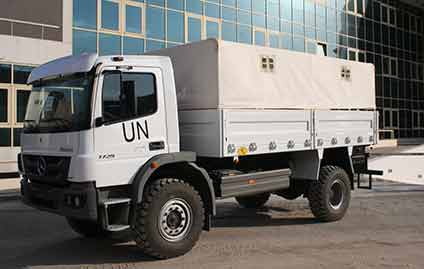 Os caminhões Mercedes-Benz produzidos no Brasil fazem sucesso no Egito também em severas operações fora de estrada. Modelos Atego 1725 4×4 adquiridos no ano passado, por exemplo, são utilizados atualmente como caminhão-tanque e para suporte logístico em operações da ONU no deserto.