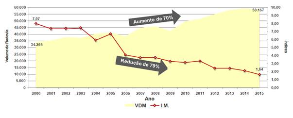 As estatísticas são ainda mais favoráveis considerando o aumento progressivo do volume de tráfego na rodovia neste período, chegando a uma redução de 79% no índice de mortos.